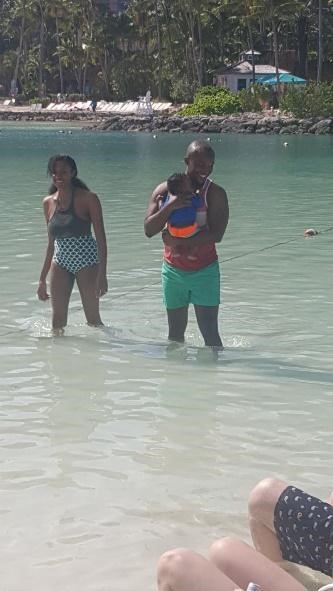 Upon our arrival in Nassau around midnight, we checked into our hotel room at the Atlantis and noticed mold and hair in the shower and brown stains on the towels — YUCK! After reporting this to the front desk, we were moved to another room in a different tower, a 7-minute walk away. As we headed to our room with Micah sound asleep in his stroller, I turned my phone on to look at the time. It was 1:30 AM. I looked at my husband and said, “We’ve been traveling for 24 hours.” At this point, all we could do was laugh. Finally, our 24-hour traveling nightmare was over.